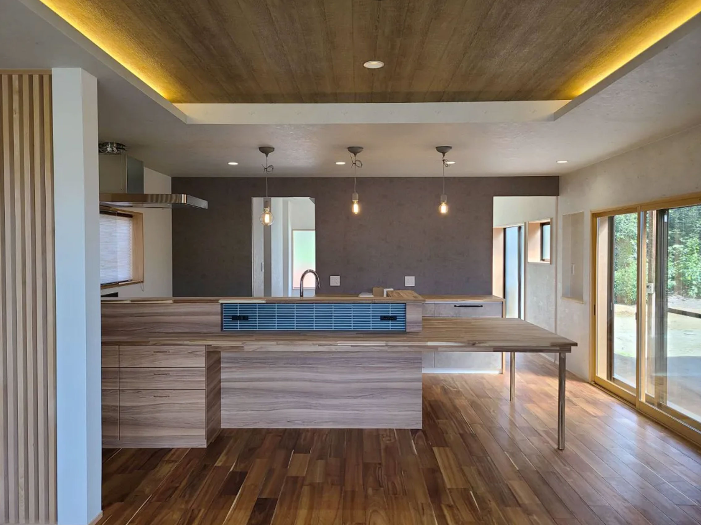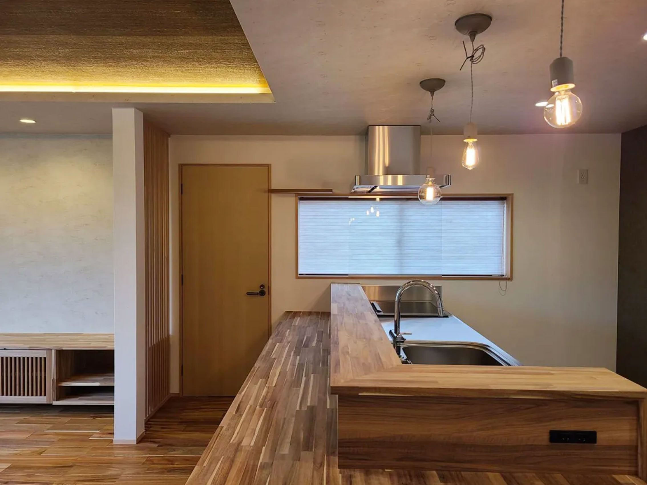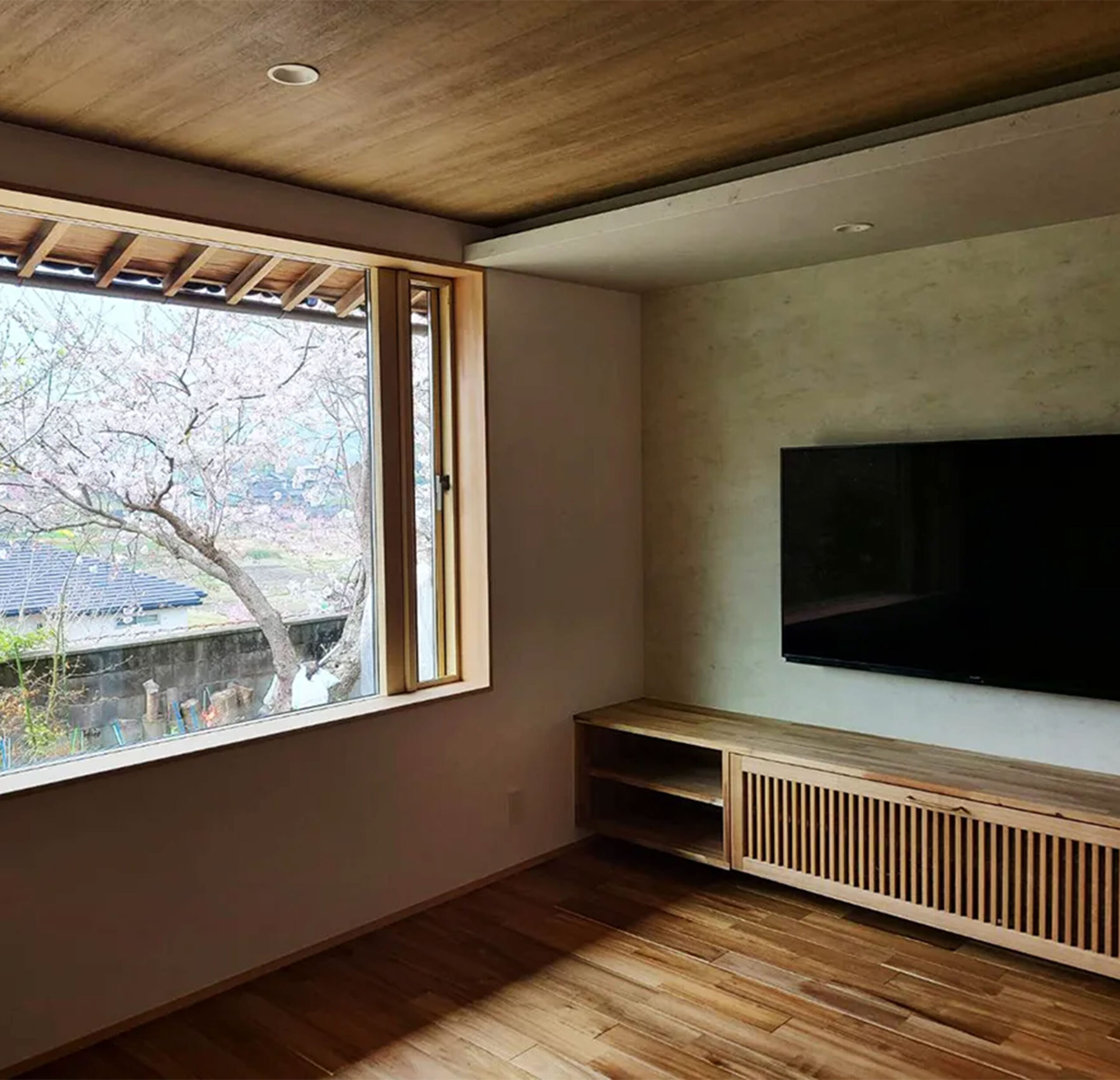 昔子供部屋として使っていた離れに家族で住むためリノベ。少し小高い位置にあり、窓からは四季折々の風景が臨めます。
